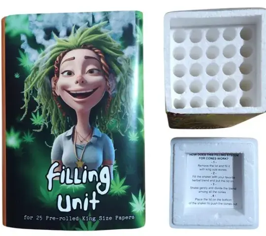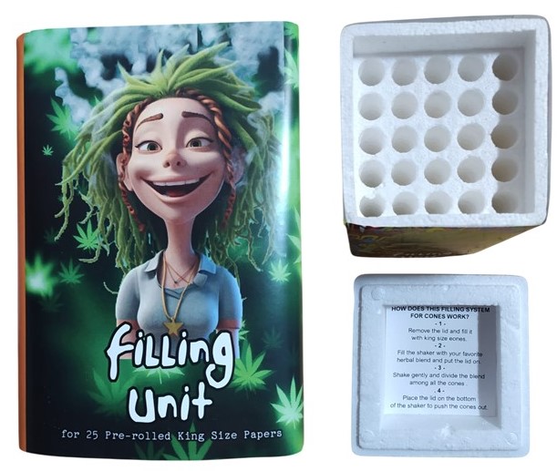 Inicio > Productos CONES FILLING UNIT FUN 25 CONES KING SIZE Filling unit es la herramienta ideal para optimizar el llenado de cones. Puede llenar 25 cones simultáneamente. Para cones de tamaña king size. Regístrate para comprar