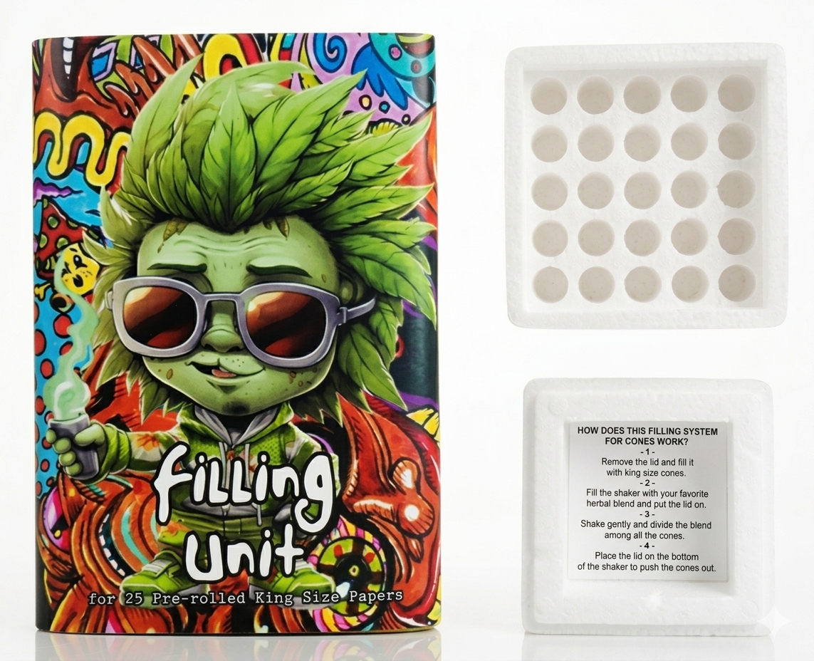 Inicio > Todas las categorías > ENVASES > PORTAPETAS CONES FILLING UNIT TUM 25 CONES KING SIZE Filling unit es la herramienta ideal para optimizar el llenado de cones. Puede llenar 25 cones simultáneamente. Para cones de tamaño king size. Regístrate para comprar