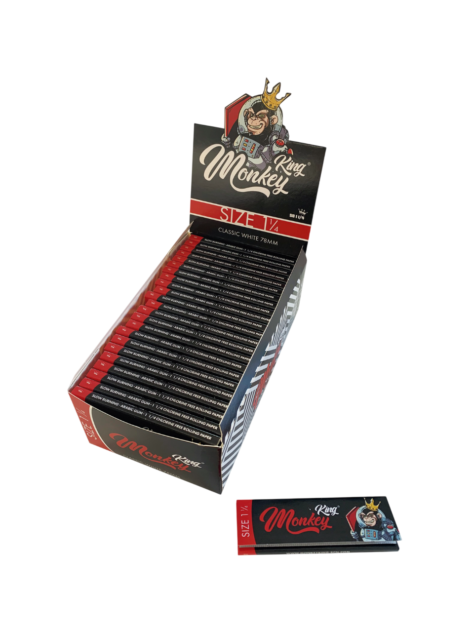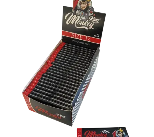 Inicio MONKEY KING 1 1/4 WHITE(50 LIBRILLOS) 50 librillos de papel de fumar white. Cda librillo contiene 50 hojas de 78x44 mm. Regístrate para comprar