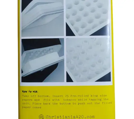 Inicio RAW CONES FILLING UNIT TX 25 CONES KING SIZE Fillin unit es la herramienta ideal para optimizar el llenado de cones. Puede llenar 25 cones simultáneamente. Perfecta para cones de tamaño king size. Regístrate para comprar