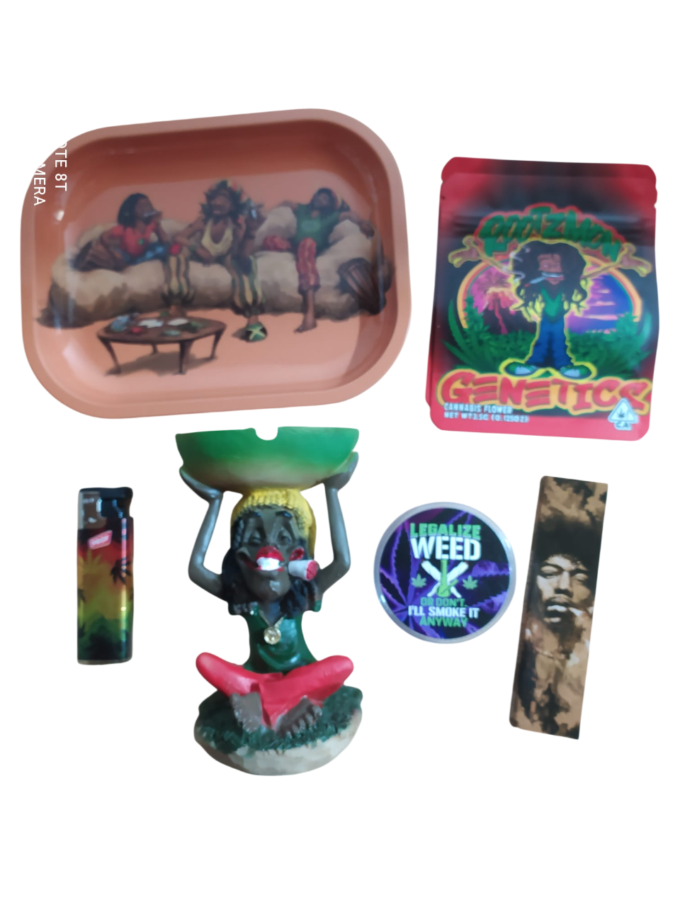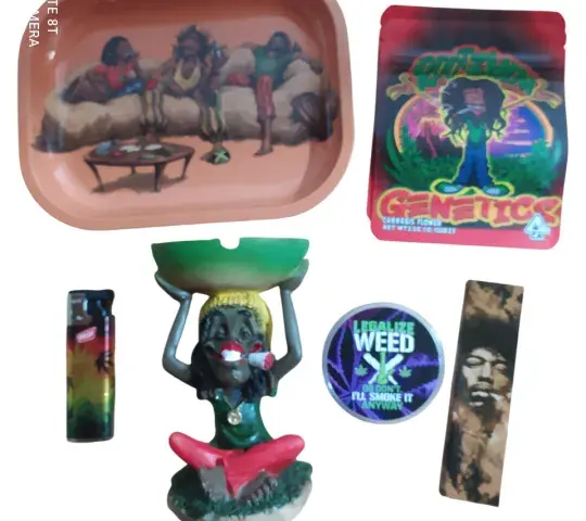 Inicio SET RASTA 12 Incluye: 2 bolsas mylar 1 bandeja 18x14cm 1 cenicero resina 1 soplete 1 grinder plástico 60mm 1 papel+tips de Jimmy Hendrix Regístrate para comprar