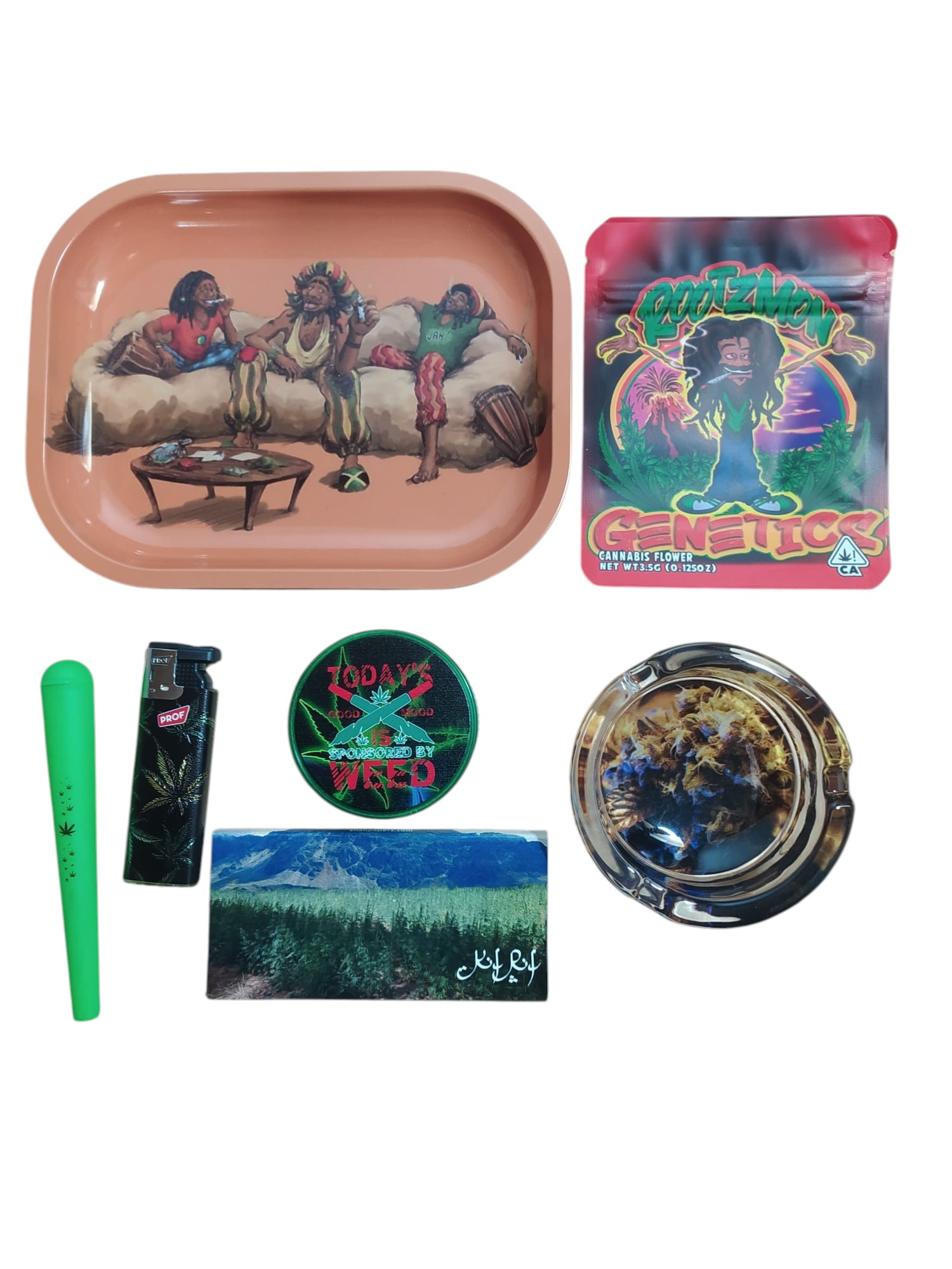 Inicio > Todas las categorías > SETS SET RASTA 7 Incluye: 1 bandeja de metal de 18x14 1 cenicero de cristal 1 papel+tips chaouen 1 portapetas 1 soplete 1 grinder plástico 60mm 2 bolsas mylar Regístrate para comprar